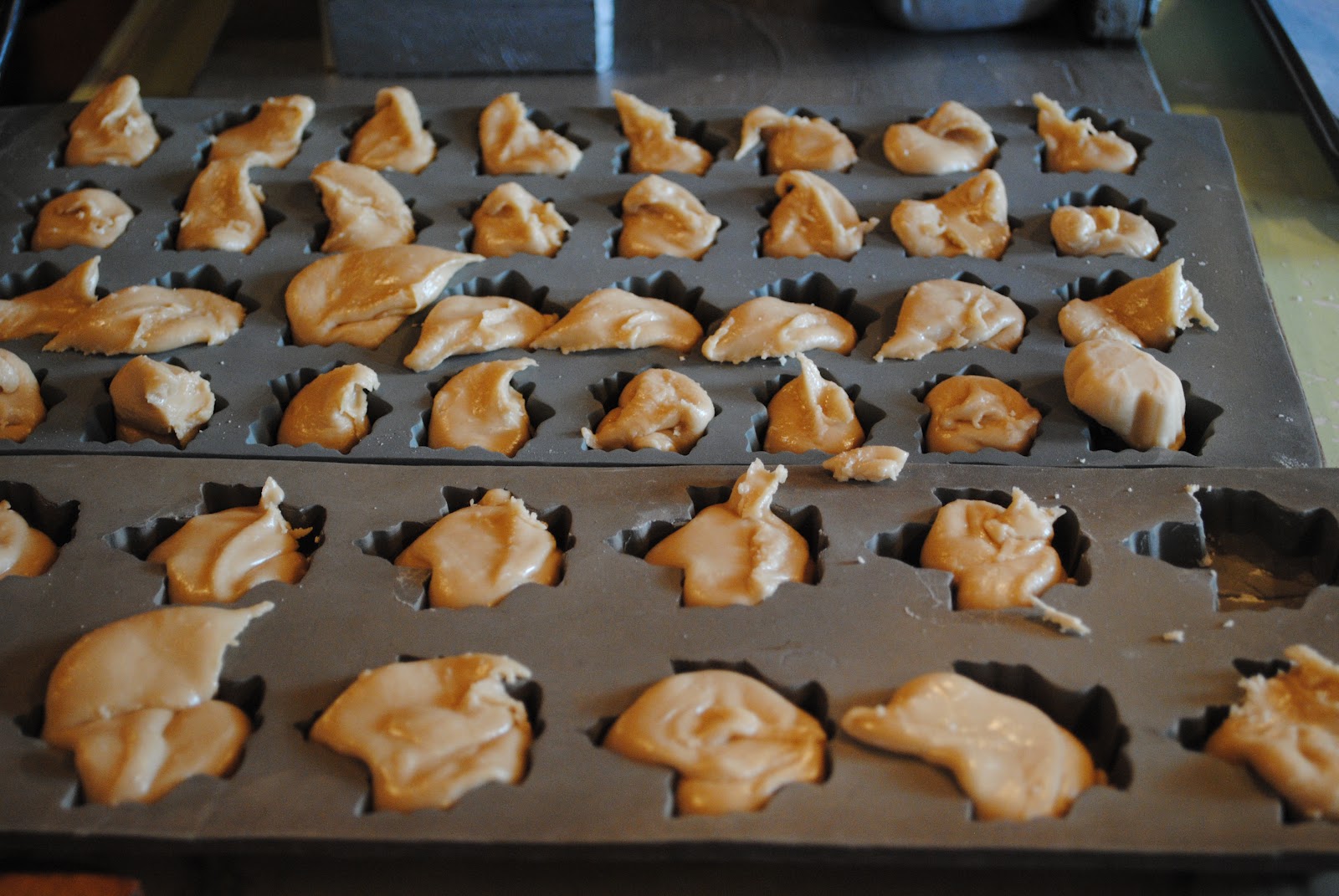 Maple candies being made from maple cream, which is made by heating maple syrup and stirring until a cream is formed. I brought home some of these tasty candies for mom and dad.